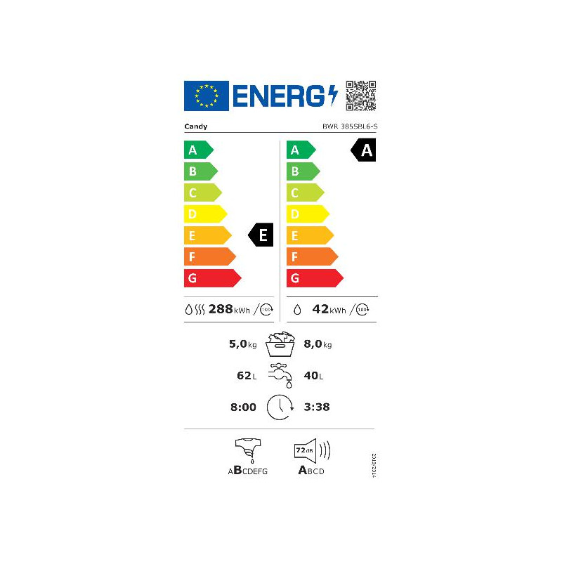 Trieda energetickej účinnosti sušenia / prania: E/A