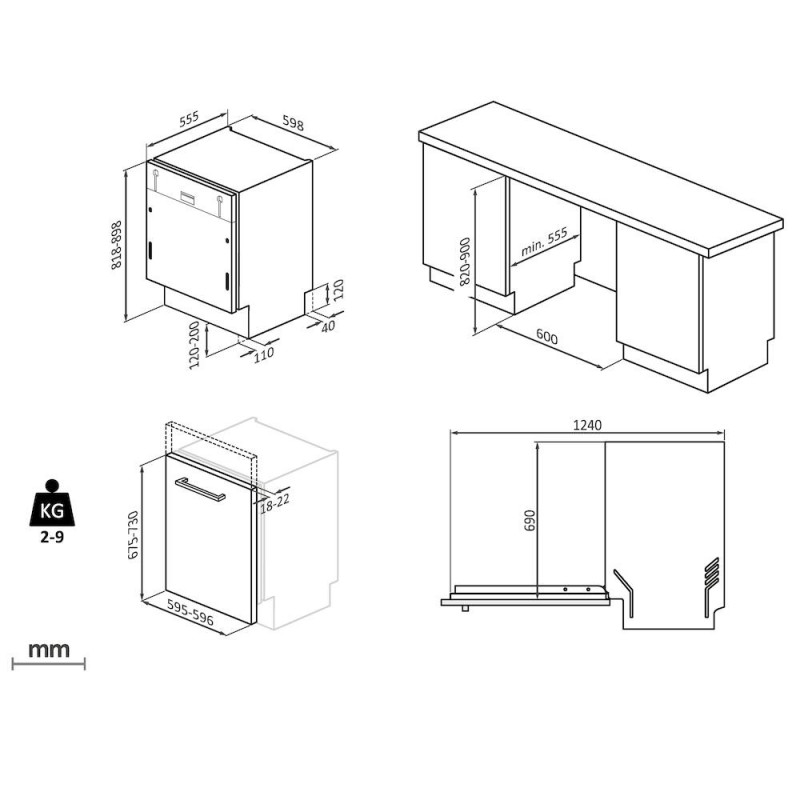 Vstavaná umývačka riadu Rapidò plne integrovaná 60 cm MAXI TUB