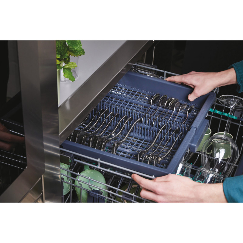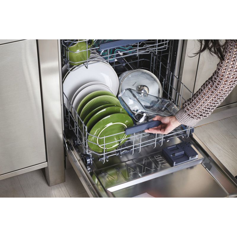 Výklopné držiaky šálky a pohárov v hornom koši, Polohovanie horného koša, sklopiteľné držiaky na taniere v spodnom koši, Horný výsuvný tretí kôš na príbory, Power Wash ostrekovacie rameno