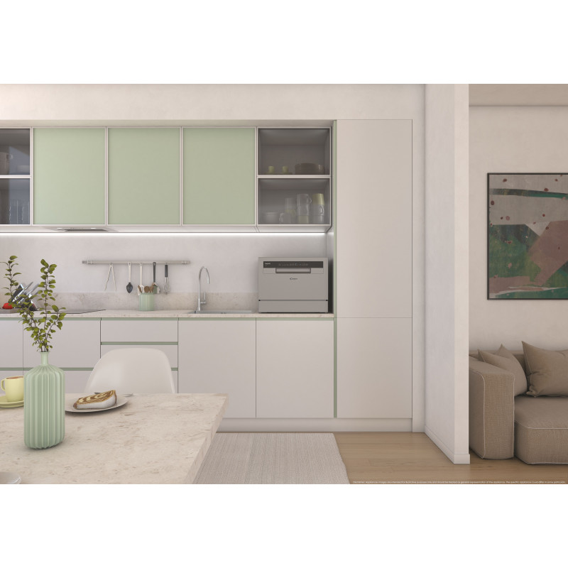 Voľne stojaca umývačka riadu na pracovnú dosku Rapidó LED kontrolky, 5 programov, 6 sád, 6,5 l, 51 dB(A), 1 kôš na riad, košíček na príbory, rýchly program 35 min, Antioverflow