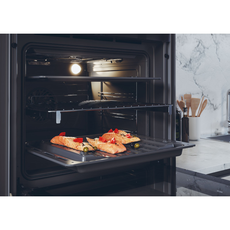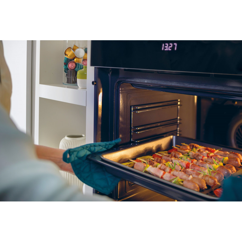 Kapacita (l) 70 Energetická trieda A+ Spotr. en. Statický program (kWh) 1.10 Spotr. en. Nútená ventilácia (kWh) 0,68 Celkový príkon (W) 2400 Programy pečenia Počet programov 10 + špeciálne Statické, Statické + ventilátor, Gril, Supergril, Gril + ventilátor, Spodný ohrev, Spodný ohrev + ventilátor, Multilevel (pravý horúci vzduch), Kysnutie, Soft+ Extra programy: Master bake - program na prípravu vo vnútri mäkkých a na povrchu chrumkavých pokrmov, Gentle cooking – šťavnaté pokrmy pri nižšej teplote, Chlieb, Zelenina, Ryby, Mäso, Pečivo Funkcia Soft+ - kombinuje prvú fázu tradičného pečenia a následne mení rýchlosť ventilátora tak, aby koláče, sušienky a croissanty boli nadýchané a mäkké Wi-Fi + Bluetooth – možnosť pripojenia k aplikácii hOn a ovládaniu na diaľku Aquactiva - hydrolytické čistenie pomocou pary Chef panel – optimálna distribúcia vzduchu a rýchle zahriatie rúry Minútka Bezpečnosť 2 bezpečnostné sklá Konštrukcia Soft Close – pomalé dovieranie dvierok Dotykové ovládanie, Bielo podsvietený displej Osvetlenie žiarovkou v zadnej časti rúry Nerezové drôtené pojazdy na vedenie plechov Príslušenstvo 2x plech (15 mm, 35 mm) 1x rošt 1x teleskopické výsuvy 1x Parný &BBQ plech – varenie v pare a grilovanie pomocou jedného príslušenstva