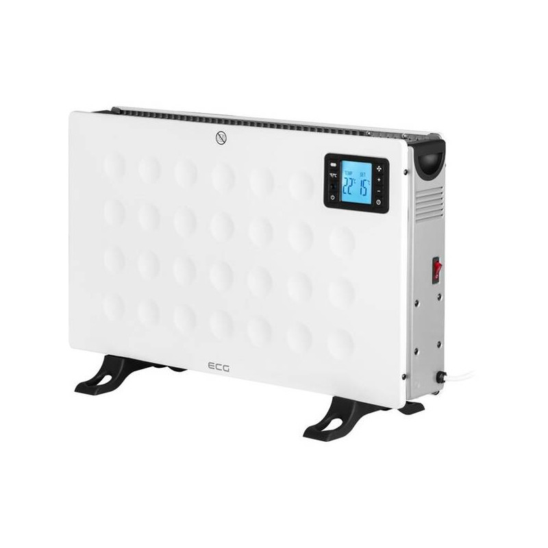 Konvektor Ecg TK 2080 DR White, príkon 2000 W, nastaviteľný termostat, 3 stupne výkonu 750/1250/2000 W, Turbo režim, LCD display s ovládaním, časovač, ochrana proti prehriatiu, diaľkový ovládač
