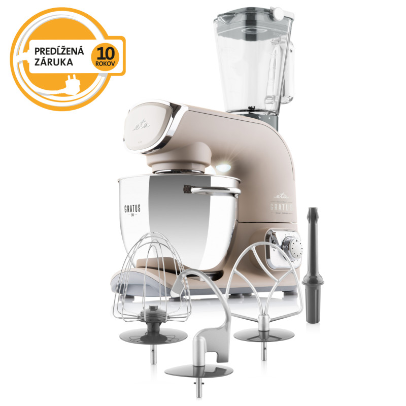 Neoddeliteľnou súčasťou kuchynského robota ETA Gratus EVO Smart je aj kvalitné príslušenstvo. Metla na miešanie je ideálna na dokonalé premiešanie ľahkého cesta na torty, piškótu alebo napr. lievance. Metlu na šľahanie využijete na vyšľahanie šľahačky, snehu z bielkov aj na prípravu nátierok. Hnetací hák vám uľahčí prípravu kysnutého a hutnejšieho cesta a poradí si tak s chlebom aj chutnou vianočkou.