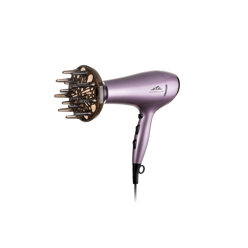 Pod nežným dizajnom sušiča ETA Rosalia sa skrýva výkonný motor a funkcie vyladené tak, aby vás domáci styling vlasov bavil a zároveň doviedol k vytúženým výsledkom. Oddelené spínače na rukoväti ponúkajú pohodlné nastavenie teploty vzduchu s výberom z troch stupňov a možnosťou voľby z dvoch rýchlostí prúdenia.