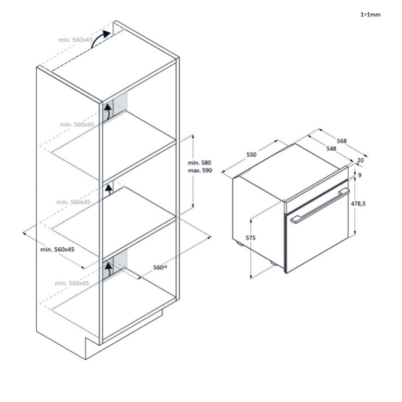 Konštrukcia 6 úrovní pečenia Nerezové postranné pojazdy Click&Clean - pre ľahké čistenie skiel dvierok Dotykové ovládanie (Basic UX) + PushPull (Diaľkové ovládanie, Osvetlenie, Nastavenie času a teploty, Rýchly predohrev) SoftClose – tlmené dovieranie dvierok 1x osvetlenie v hornej časti Príslušenstvo 1× plech – 20 mm 1× plech – 40 mm 1× rošt 1x teleskopické výsuvy Parametre: Kód: 33704153 EAN: 8059019101903 Farba: Čierne sklo Pripojenie: Kábel s vidlicou 230V Rozmery výrobku V × Š × H (mm): 595 × 595 × 568 Čistá váha výrobku (kg): 32,3 Rozmery balenia V × Š × H (mm): 665 × 620 × 646 Hmotnosť s obalom (kg): 34,1