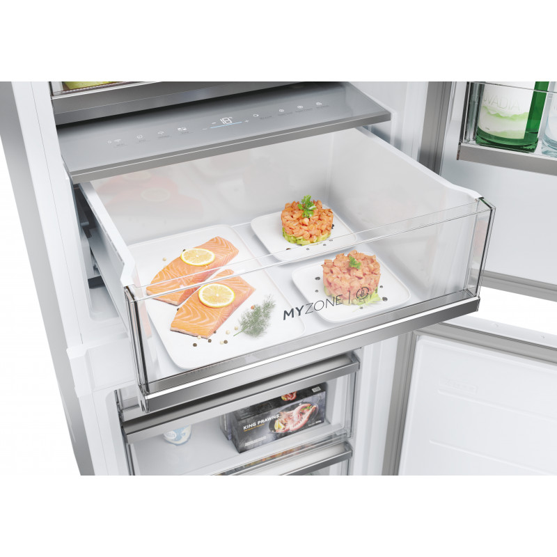 Chladnička 2+1 políc, 2+3 priehradok vo dverách chladničky 1x My Zone – zásuvka s teplotným rozsahom 0℃, 3℃, 5℃ 1x Crisper (zásuvka na zeleninu) s HCS (humidity control systém) Police na víno (chrómovaná, 4 fľaše), Držiak na vajíčka Daylight osvetlenie