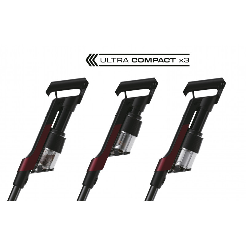 14,4 V / 2500 mAh lítium-iónová batéria Dokáže zachytiť 99% prachu na tvrdých podlahách TECHNOLÓGIA ULTRA COMPACT X3™ zhutňuje prach a nečistoty pre zvýšenie sacieho výkonu a maximalizáciu kapacity nádoby na prach ULTRALIGHT: menej ako 1,3 kg v ručnej verzii
