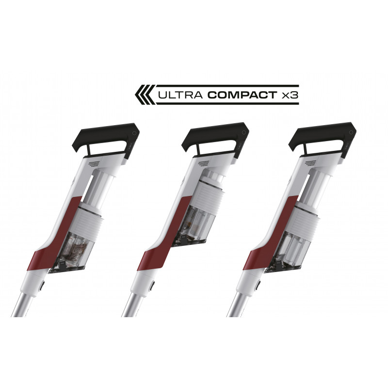 Kapacita nádoby na prach: 0,75 l – 1 l, strojnásobená vďaka technológii ULTRA COMPACT X3™, ľahké vyprázdnenie