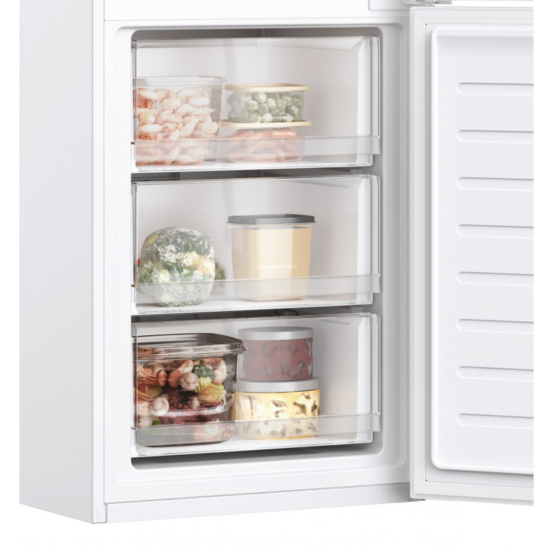 Hlavné vlastnosti (Nariadenie v delegovanej právomoci: (EÚ) 2019/2016) Trieda energetickej účinnosti D Celkový čistý objem (l) 341 Čistý objem chladničky/ mrazničky (l) 222/119 Spotreba energie za deň (kWh/24 hod) 0,558 Ročná spotreba energie (kWh/rok) 204 Mraziaci výkon (kg/24 hod) 8 Doba skladovania pri výpadku prúdu (hod) 10 Úroveň emisií hluku šíreného vzduchom (dB(A) re 1 pW) 38 Emisná trieda hluku šíreného vzduchom C Klimatická trieda N - ST 16 ° - 38 ° C Hviezdičkové označenie **** Trieda energetickej účinnosti svetla F Vlastnosti Wifi konektivita – možnosť ovládať chladničku na diaľku a využívať doplnkový obsah pomocou aplikácie hOn (napr. Food Locator, Inventory Management, Smart Drink Assistant, atď.) Total No Frost Air Care – beznámrazová technológia chladenia v chladničke aj mrazničke s rovnomernou distribúciou chladného vzduchu v jednotlivých úrovniach Invertorový kompresor – tichý chod, nízka spotreba energie Externý dotykový displej na dvierkach; Elektronický termostat Samostatné nastavenie teploty chladničky a mrazničky Funkcia Rýchle chladenie, Rýchle mrazenie, Dovolenka, Eco Automatické odmrazovanie chladničky aj mrazničky Alarm otvorených dvierok Tesnenie dvierok s hygienickým ošetrením proti tvorbe plesní a baktérií Chladnička 2 + 1 sklenené police 5 priehradok vo dverách chladničky 1 zásuvka na ovocie a zeleninu Cool Space Plus s reguláciou vlhkosti 1 zásuvka na čerstvé mäso a ryby Chill Space Držiak na víno; Držiak na vajíčka Mraznička 3 transparentné zásuvky Konštrukcia Osvetlenie LED Polohovateľné nožičky 1 invertorový kompresor Integrované madlo Výmenný záves dverí